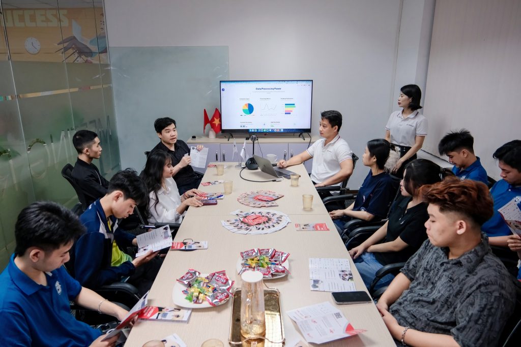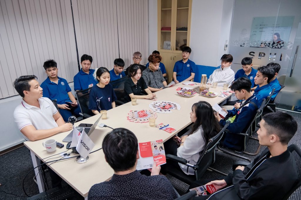 Đại diện Sphinx gồm anh Vũ Đình Đồng – Phó Giám đốc Trung tâm Phát triển Phần mềm (SDC) và chị Nguyễn Thị Dung – Quản lý Nhân sự, đã giúp đoàn sinh viên tìm hiểu về văn hóa doanh nghiệp, môi trường làm việc năng động và đặc biệt là được tiếp cận trực tiếp với các giải pháp AI tiên phong S-visor mà Sphinx JSC đang phát triển trong hành trình chuyển đổi số doanh nghiệp.
